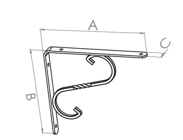 Beşel Raf Altı Ferforje No:3 230x160x20mm Siyah