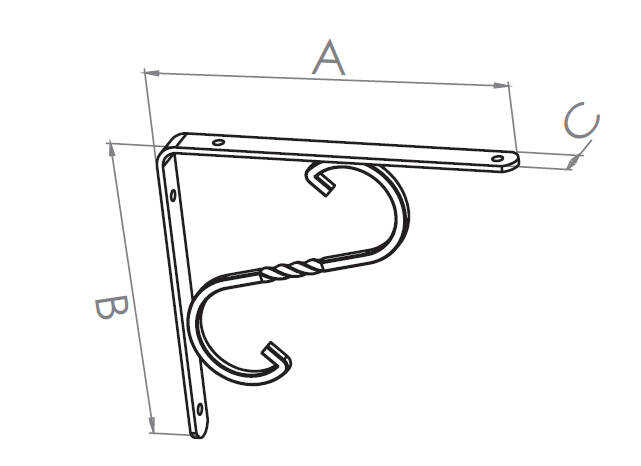Beşel Under Shelf Wrought Iron No:2 200X150X18MM Black