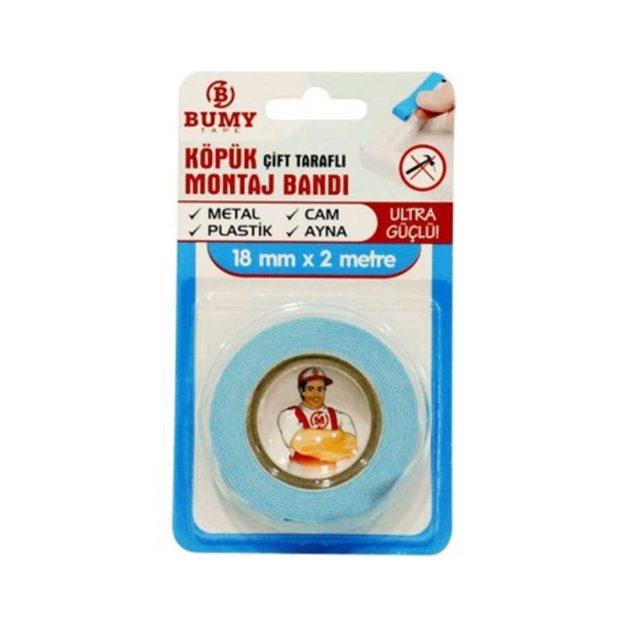 Güçlü yapışma özelliğiyle öne çıkan Bumy çift taraflı köpük bant, dekorasyon ve onarım işlerinizde işinizi kolaylaştırır. 18 mm genişliği ve 2 metre uzunluğuyla her iki yüzeye eşit derecede yapışarak dayanıklı bir tutuş sağlar. Beyaz rengi, estetik bir görünüm sunarken çeşitli yüzeylerde kullanılabilir. Özellikle iç mekan uygulamalarında duvar süslemeleri, çerçeve montajları ve hafif eşyaların sabitlenmesi için idealdir.