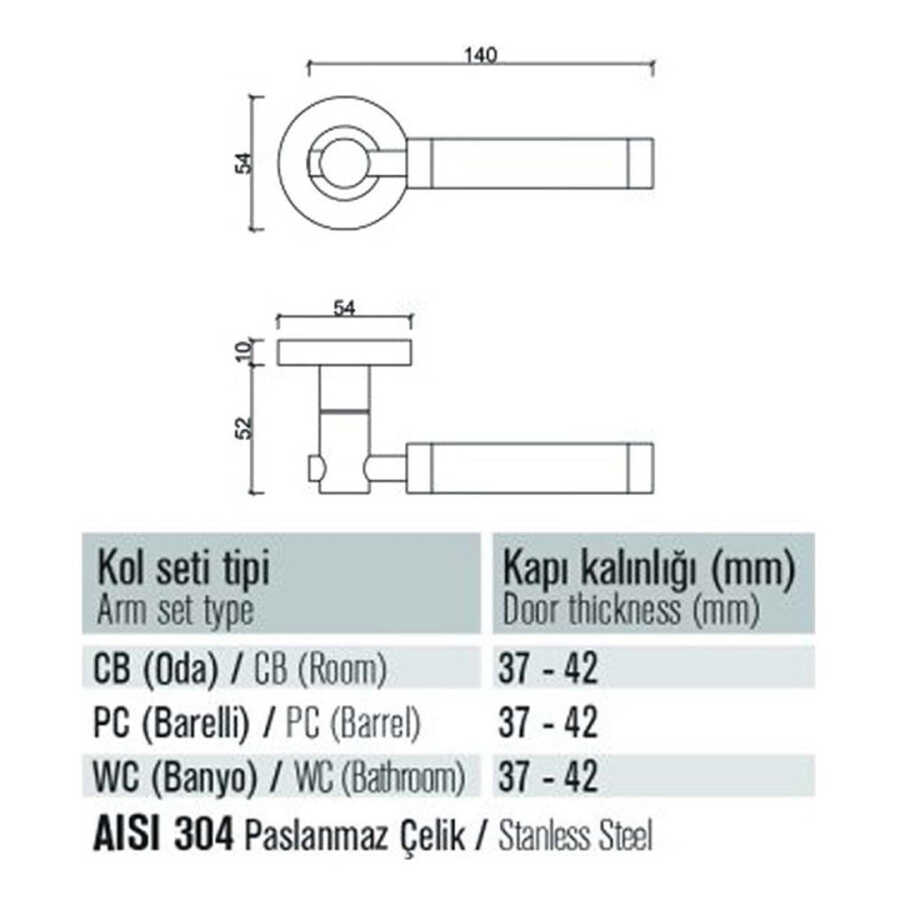 Evinizin iç mekanlarına modern bir dokunuş katacak Condi Kapı Kolu Oda (303) modeli, şık tasarımı ve dayanıklı yapısıyla dikkat çekiyor. Saten krom kaplamasıyla göz alıcı bir görünüm sunan bu kapı kolu, aynı zamanda AISI 304 paslanmaz çelik malzemesi sayesinde uzun ömürlü kullanım imkanı sağlıyor.