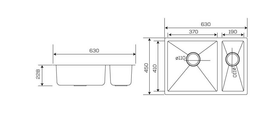 Geniş ve Derin Hazne: 450 mm uzunluğunda, 630 mm genişliğinde ve 230 mm derinliğindeki tek haznesi, büyük tencere ve tavaları rahatlıkla yıkamanıza olanak tanır.