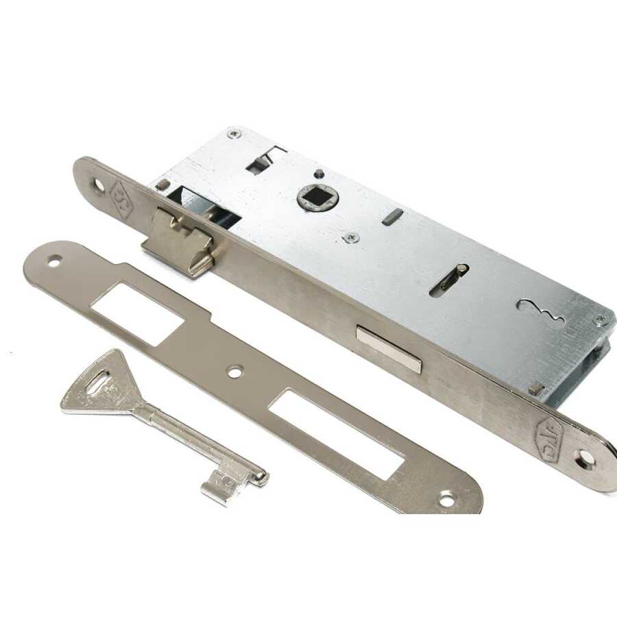 Notify me when its in stockDaf Lock 521 Room 40 Economic Oval Satin is a bearingless room lock with 40 mm centre distance, oval case structure, made of steel case and body. It measures 56x173 mm.