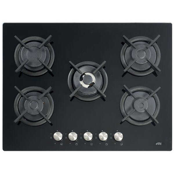 Evii 858 CAT EI Ankastre Cam Ocak 5 Göz (1 Wok) Siyah