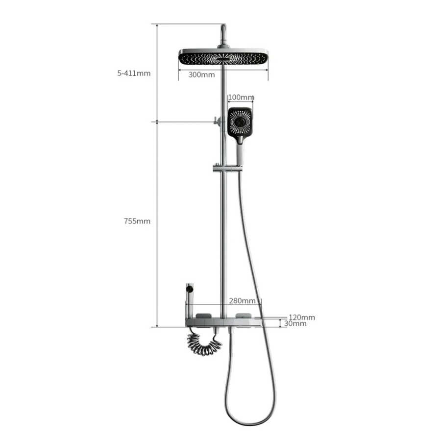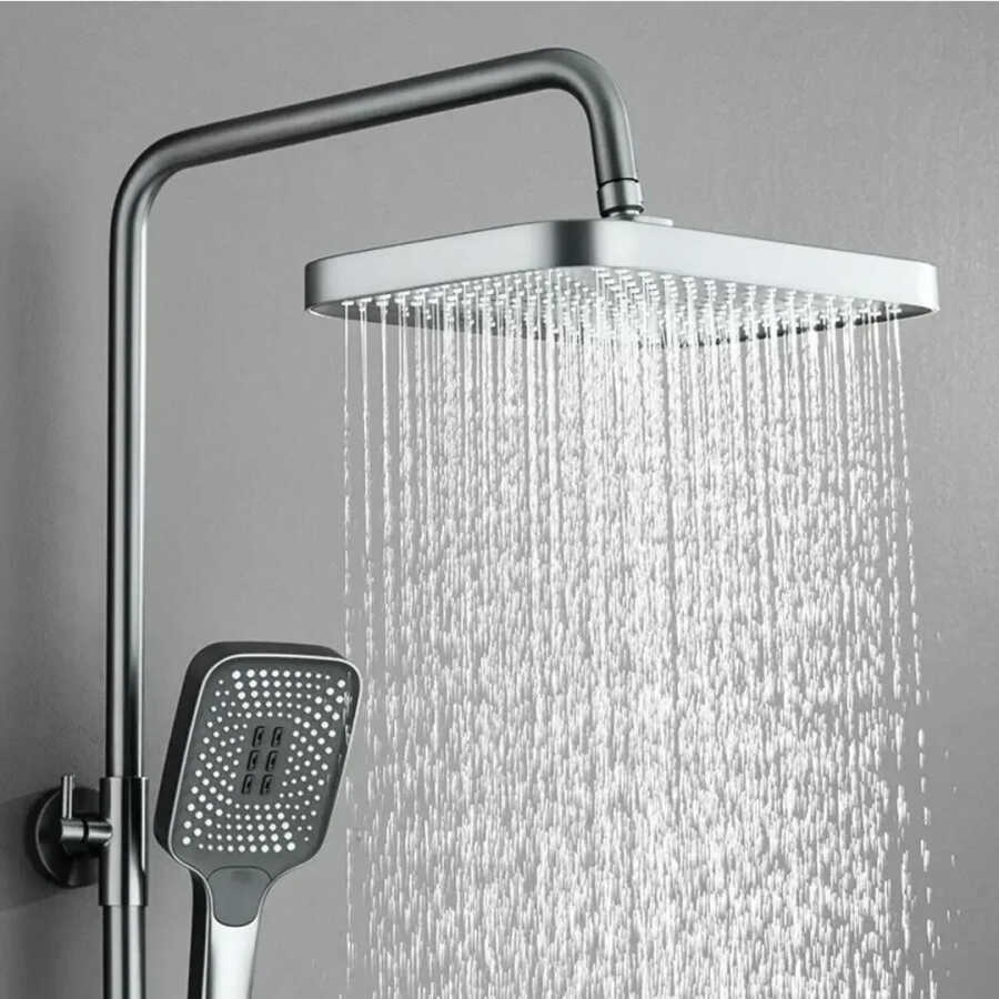 Components Included: Concealed installation mixer, top shower, rain shower rail, faucet, 1500 mm hose, hand shower, hand shower holder and cover plates