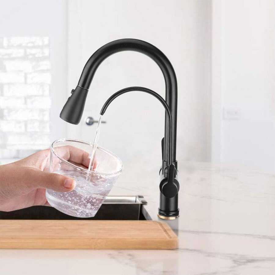 Notify me when its in stockFleko Spiral Sink Mixer SP4 434 C Purified Black is a superior product designed to add a modern touch and functionality to your kitchens. Stainless steel material structure guarantees durability and hygienic use. It adds elegance to your kitchen decor with its bright-chrome coloured design. It offers ease of use with its ability to provide cold and hot water flow. Single hole style with double holder offers a contemporary look and practical use. With its ceramic plate accumulation feature, it ensures that your water is cleaner. It provides flexibility thanks to its rotatable head and offers extra convenience to the user with its pull-down type spray. Easy to install with single hole installation. The double handle structure allows you to easily adjust the water temperature and flow rate. It is compatible with standard kitchen sinks with above deck mounting type. Brushed and stainless steel surface treatment provides long-lasting use and a stylish appearance.