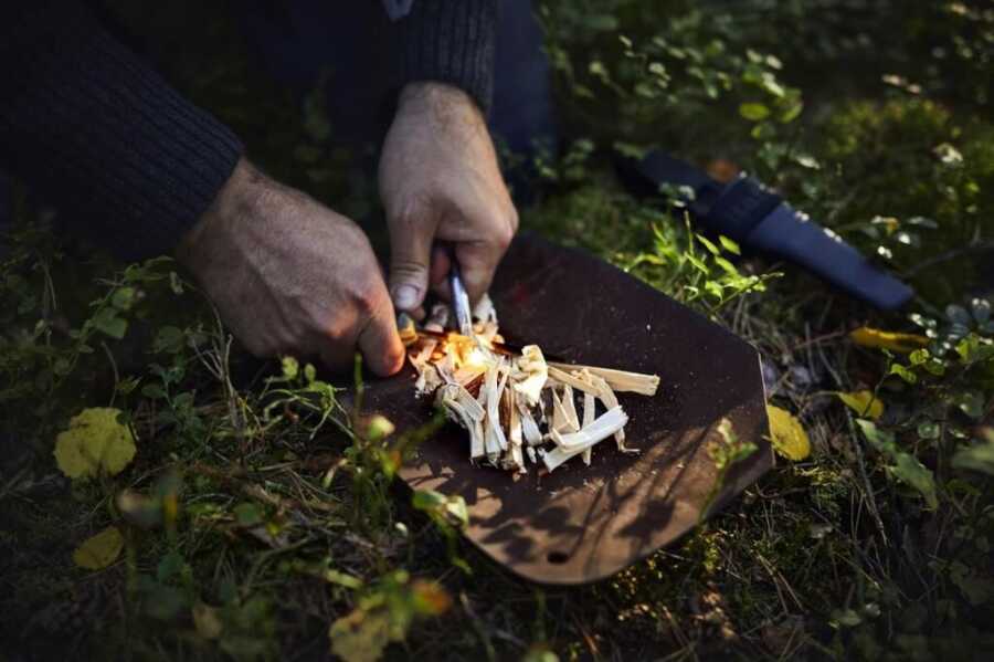 Daha iyi işlev ve ergonomi için uzun ve ekstra kalın ateş çeliği, daha iyi verimlilik sağlar. 100 mm uzunluğunda ve 10 mm çapında bir ateş çeliği için her türlü hava koşulunda kullanımı kolaydır. Üretilen kıvılcımlar yaklaşık 3000°C'ye ulaşır. Kılıfları ateş çeliği tutucularla gelen Hultafors Outdoor Bıçaklarının (OK1 ve OK4) omurgasına karşı kullanılır.