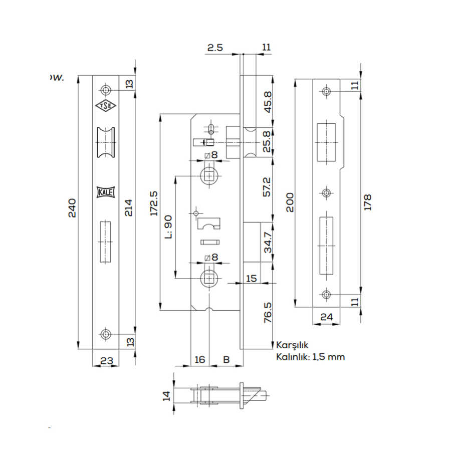 KALE KİLİT 269P3500001 BATHROOM-WC LOCK FOR PVC JOINING-Chrome-35 mm