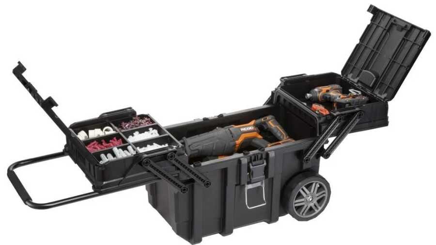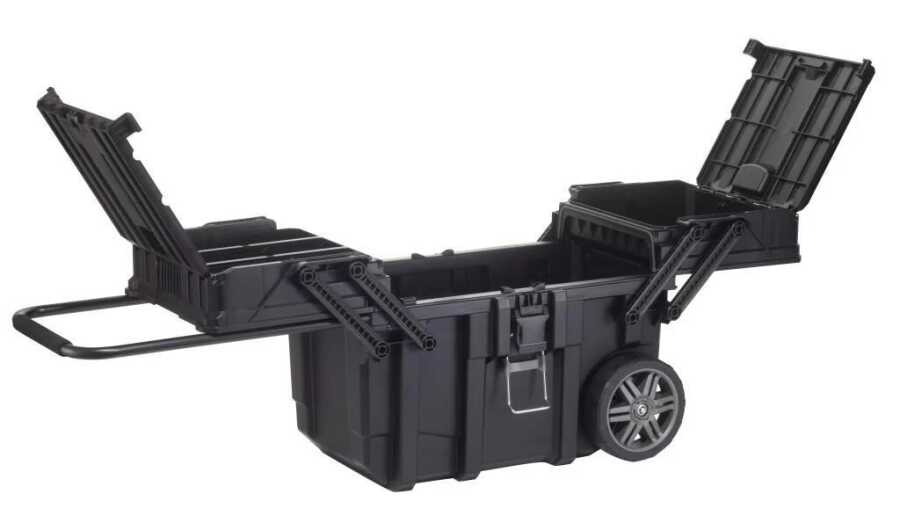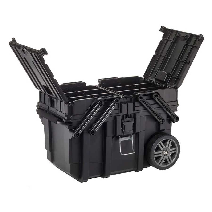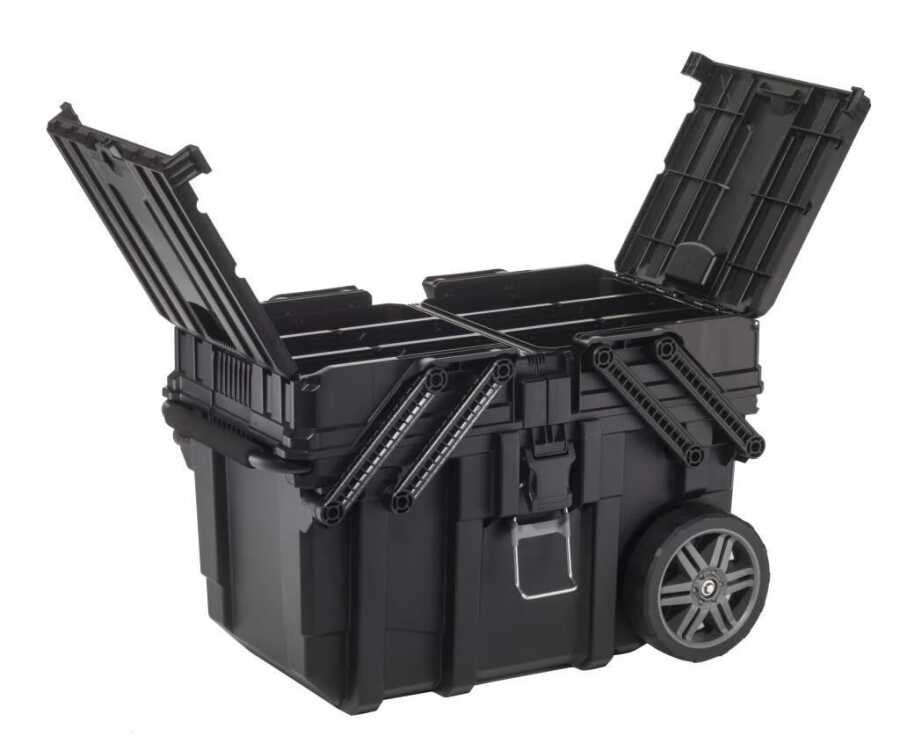 Made from durable materials, the Keter Cantilever Job Box offers quick access with its console system and effortless transport with its wheels. It is a professional-grade storage solution that safely protects your tools even in harsh conditions.