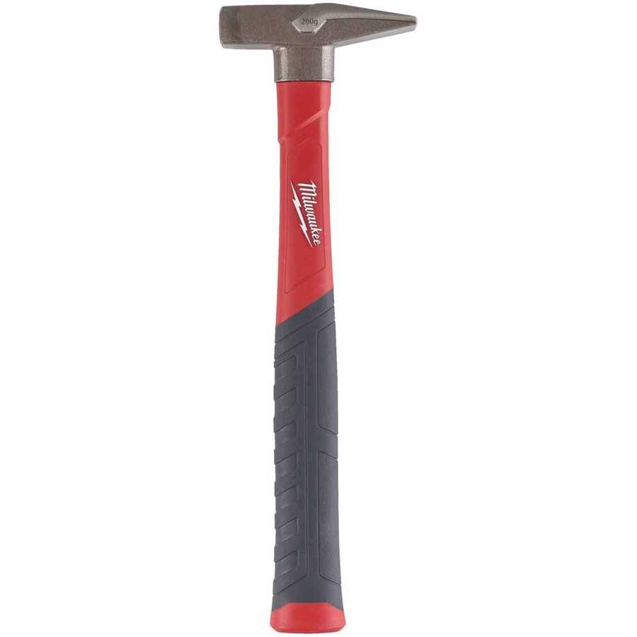 This hammer features a 200 gram head weight making it ideal for precise work. The reinforced fiberglass handle absorbs shock and vibration reducing hand and wrist fatigue. The non slip coated grip provides secure handling. The reinforced head to handle connection ensures durability and long service life. It is suitable for woodworking furniture assembly fine craftsmanship and general maintenance tasks.