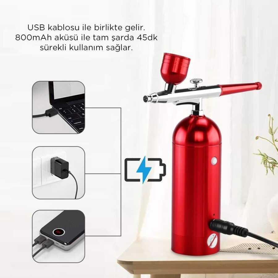 Yeni nesil rox şarjlı kendinden kompresörlü airbrush mini boya tabancası birçok farklı uygulamada kullanılabilir. Kullanıma hazırdır. Entegre mini kompresörü ve yine entegre aküsü sayesinde çalışır, kablosuz özgürce kullanım imkânı sağlar.