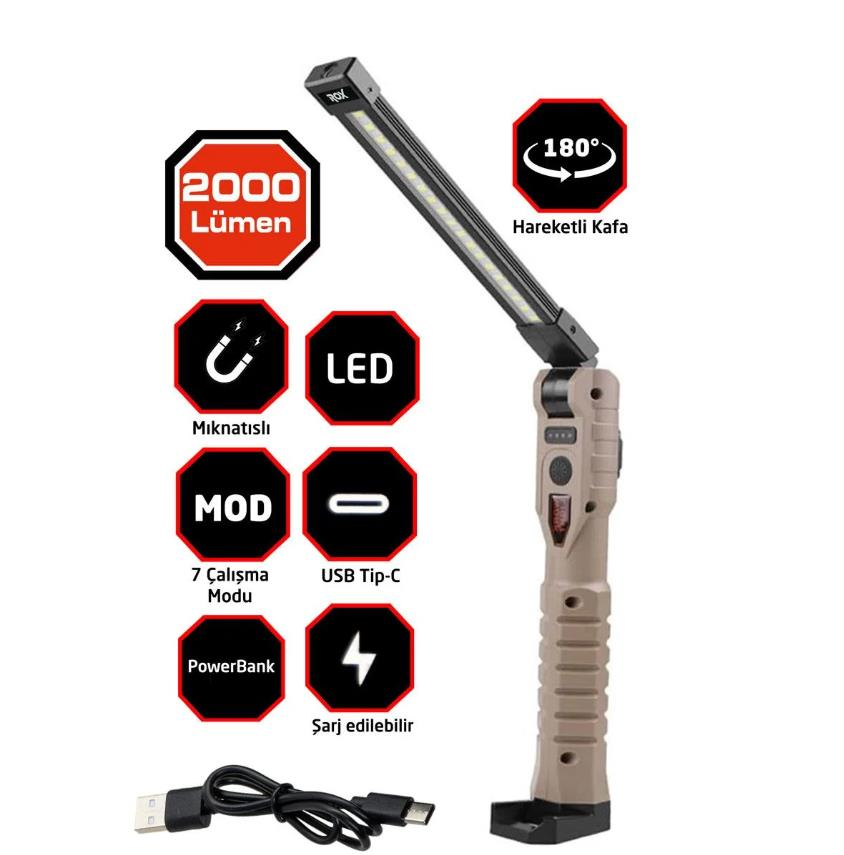 Rox 0221 Şarjlı Katlanır Çok Amaçlı Çalışma Feneri 2000 Lümen