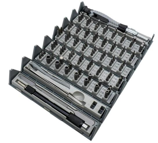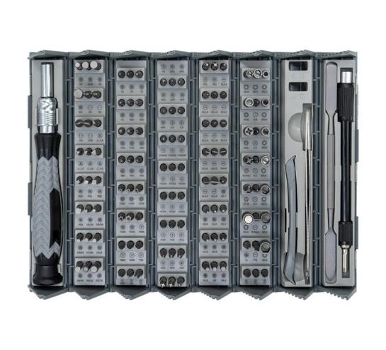 126'sı 1 Arada Hassas Tornavida Seti ile tanışın - tüm kendin yap ve onarım ihtiyaçlarınızı karşılamak için tasarlanmış kapsamlı bir araç seti. Bu olağanüstü set, Clutch Head, Flat, Frearson, Hex, Pentalobe, Phillips, Posidrive, Spanner, JIS, Security Torx, Square, Torx, Star, Tri-Angle ve daha fazlası dahil olmak üzere 120 hassas özel uç içerir.