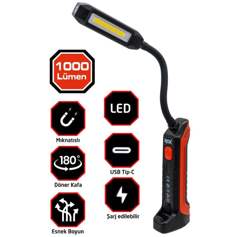 Notify me when its in stockRox 0220 Şarjlı Çok Amaçlı Esnek Boyunlu Çalışma Feneri 1000 Lümen