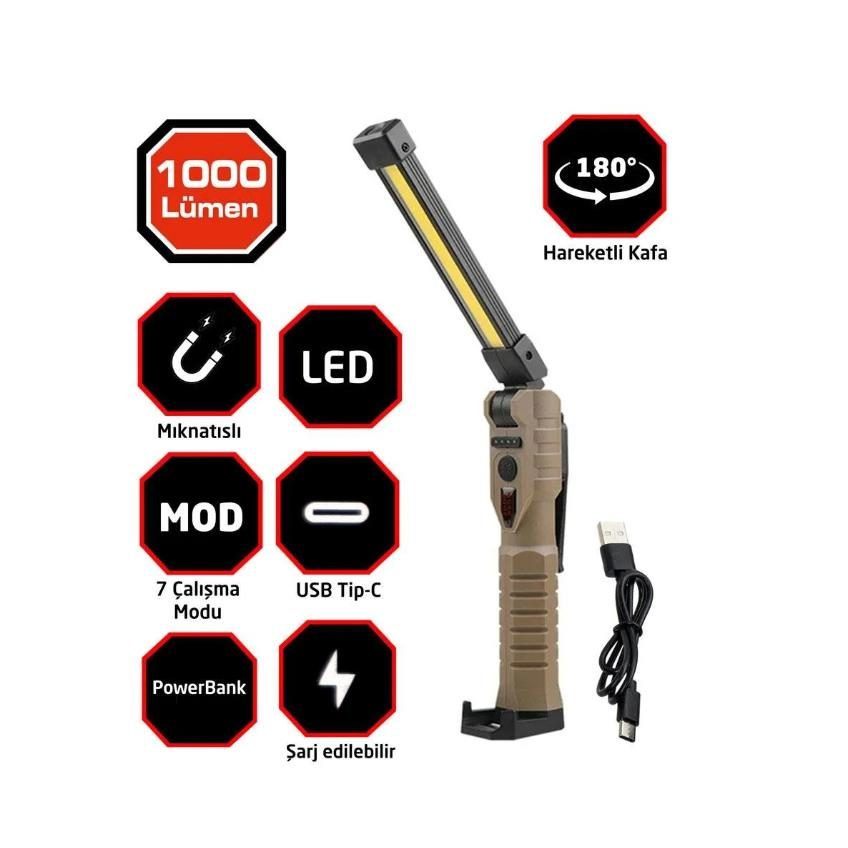 1 Adet - Şarjlı katlanır çalışma el feneri