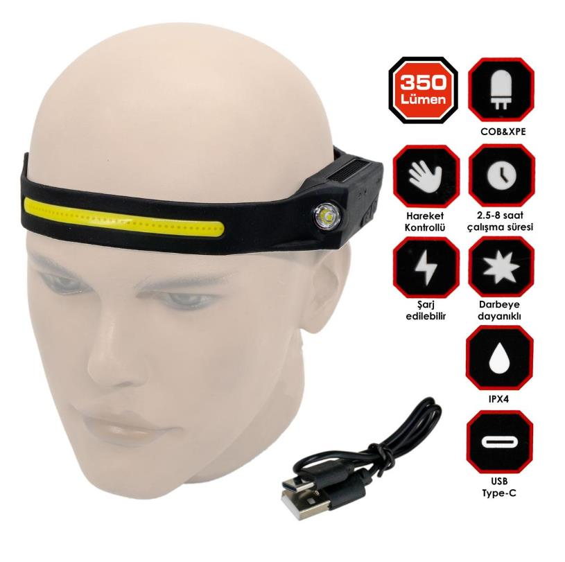 COB Yüksek: 350 lümen, Çalışma süresi: 2.5-3 Saat