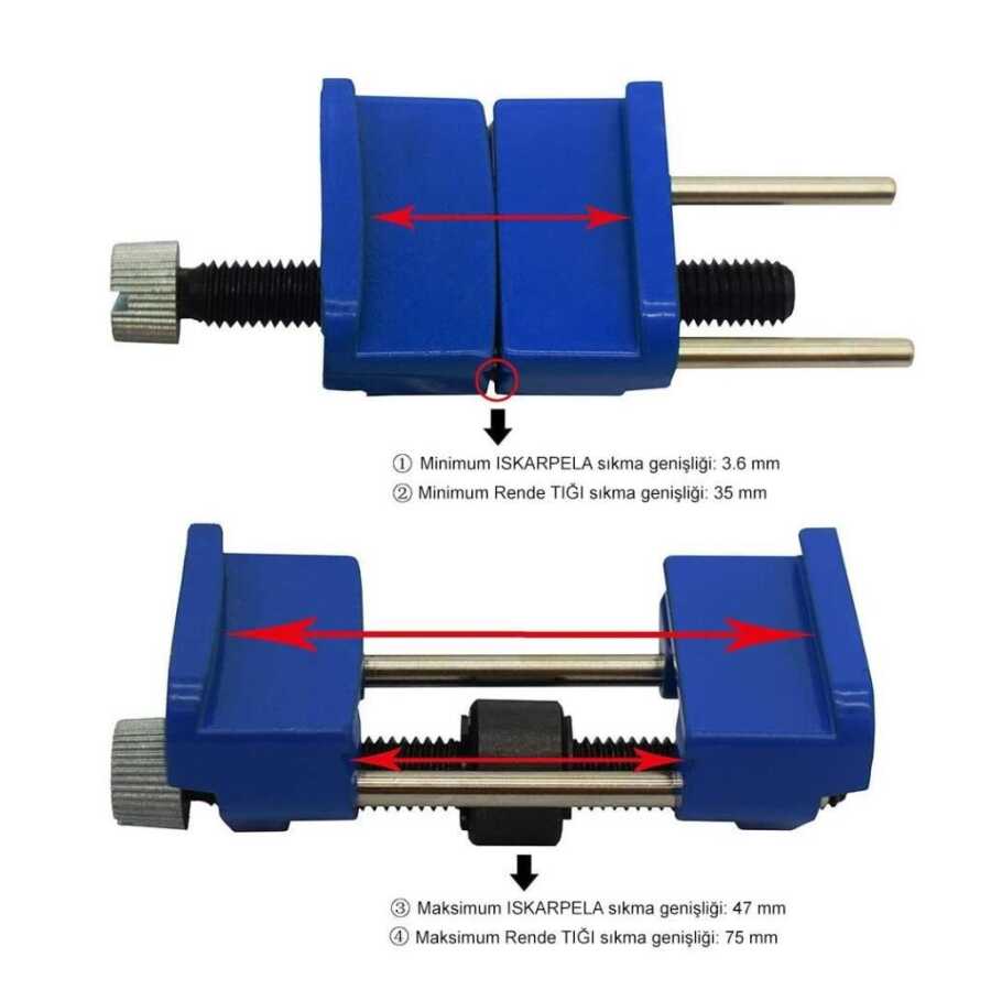 Sıkma ayar vidasını saat yönünün tersine çevirin, keski veya diğer bıçak aletlerini sıkıştırın, bıçak açısını serbestçe ayarlamak için yukarı ve aşağı hareket ettirin. Aletleriniz daha keskin ve daha hassas hale gelene kadar bıçağı ileri geri kaydırın!