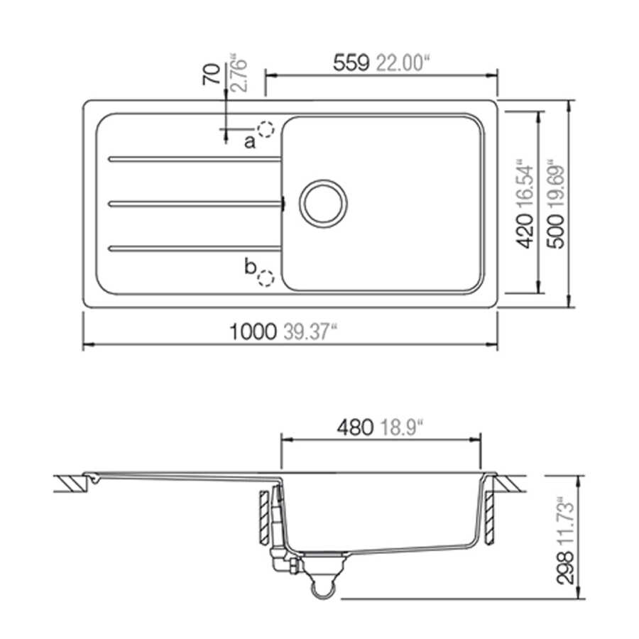 The Formhaus D100L model is a kitchen sink with a left bowl and drainer. The reversible design allows left or right hand installation. Designed for top mount installation. The large bowl is suitable for everyday kitchen washing tasks.