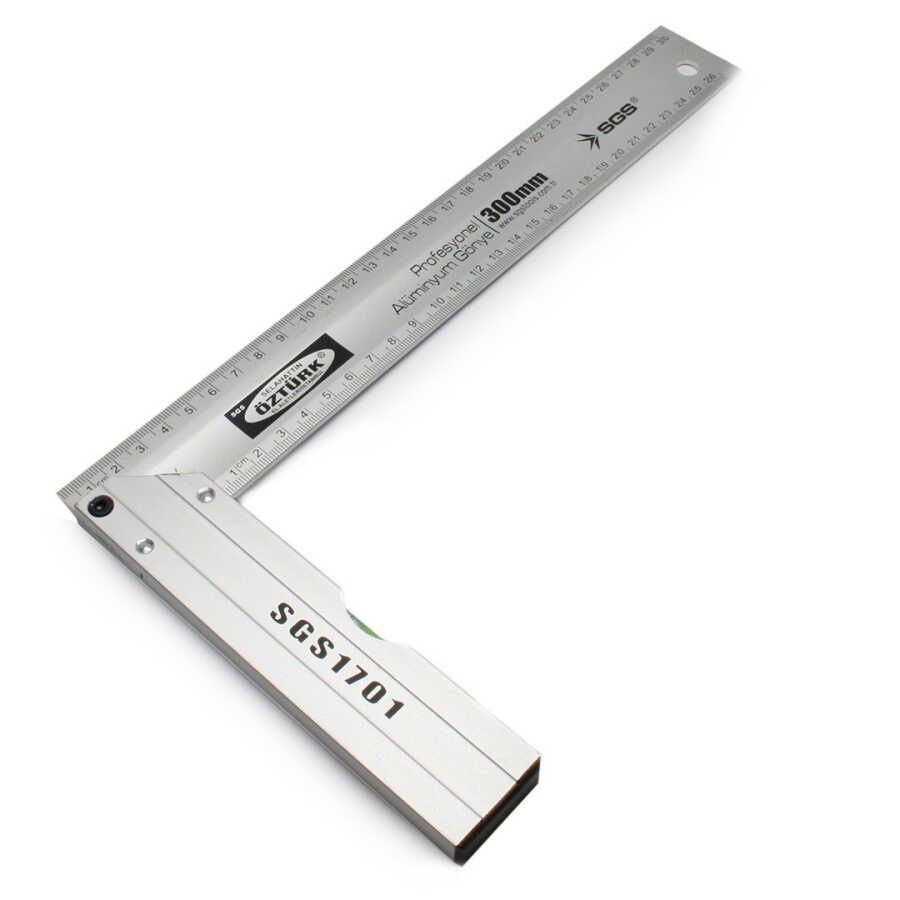 Also called "Carpenter's Mitre", aluminum mitre with spirit level apparatus, allowing millimetric working at 90° and 45°.
