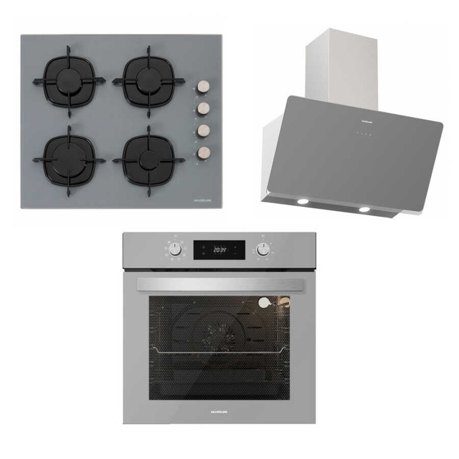 Silverline Gri Ankastre Set (BO6504S01 Fırın + CS5335S01 Ocak + Soho Gri 60 cm Davlumbaz)