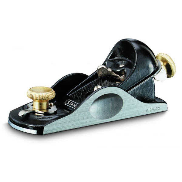 Gray cast iron block plane with ground base and adjustable mouth opening. Cover bar clamped with eccentric lever. Lateral and depth adjustment. Japanese plane blades available as an option.