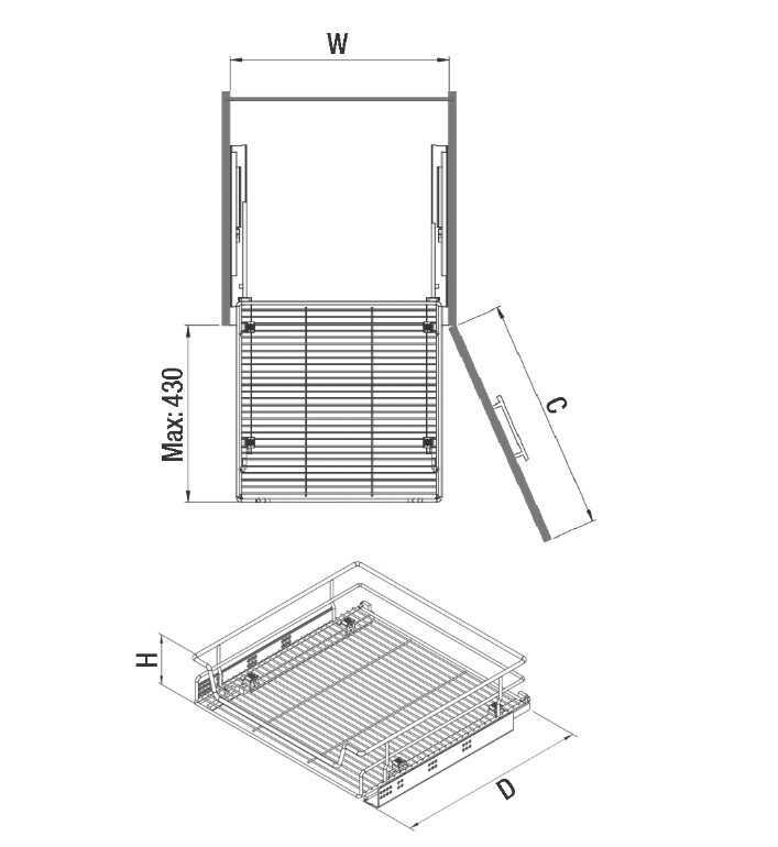 9 baskets suitable for different module widths are chrome plated.