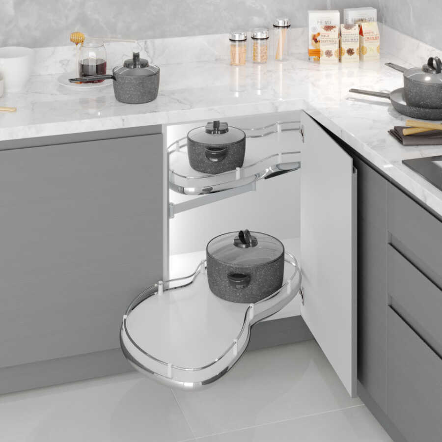Köşe dolaplarında, menteşeli kapak ile kullanıma uygundur.