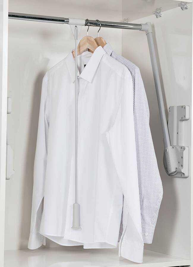 The wardrobe elevator has the task of lowering the clothes in high wardrobes to an accessible level.