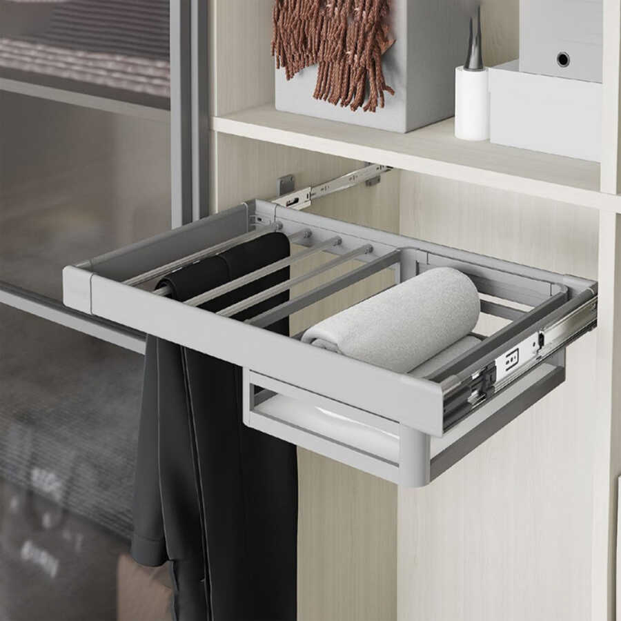 Gelince Haber VerStarax 6243 gri pantolonluk, dekorasyonunuza modern ve işlevsel bir dokunuş katmak için tasarlandı. Bu yan bağlantılı teleskopik çekmece, pantolonlarınızı düzenli bir şekilde saklamanızı ve kolay erişim sağlamanızı mümkün kılar.