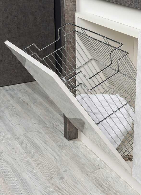 The basket can be easily taken out of the cabinet when desired.
