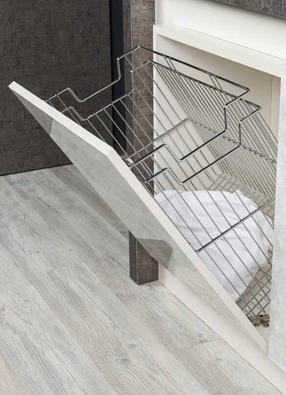The basket can be easily taken out of the cabinet when desired.