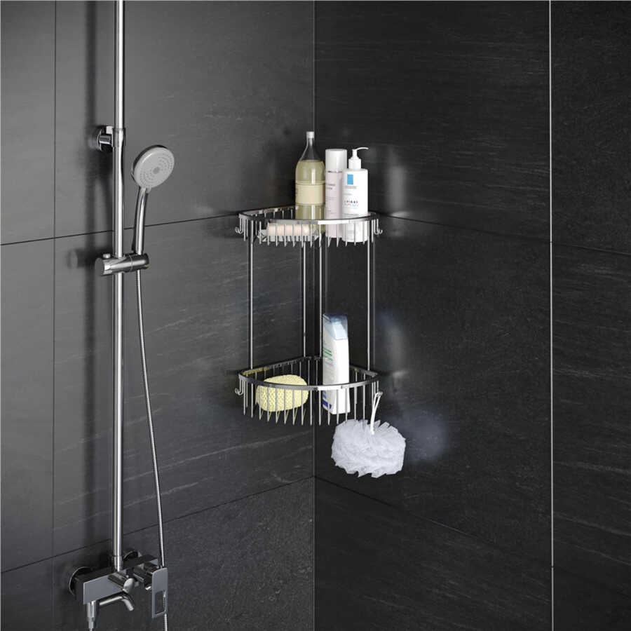 Starax 8866 Chrome Sponge Holder Double Oval Corner 22 Cm