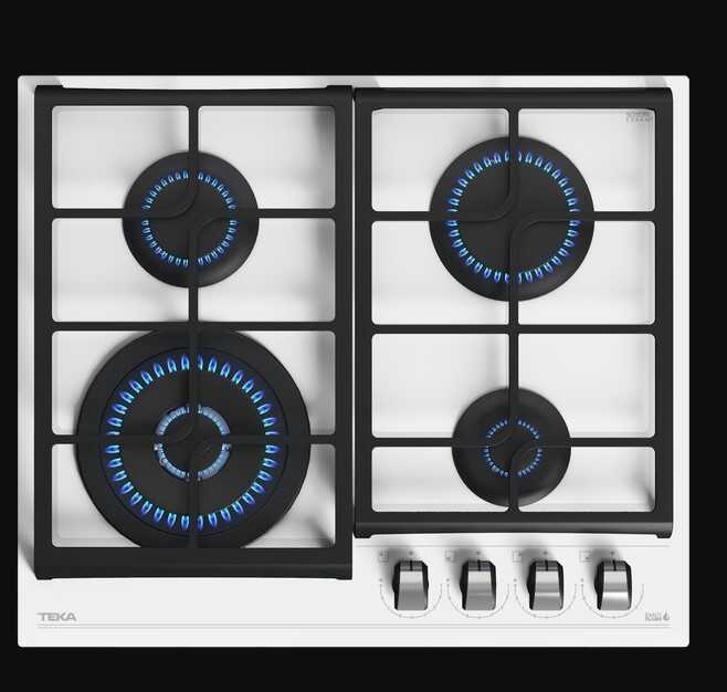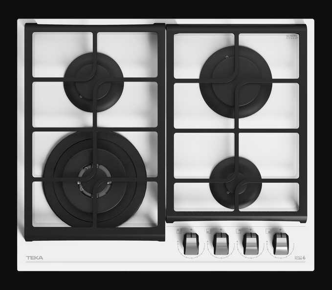 Teka, GZC 64321 XBN, ExactFlame, gas hob, white hob, 60cm hob, 4 burner hob, wok burner, automatic ignition, automatic locking, cast iron pan supports, tempered glass hob.