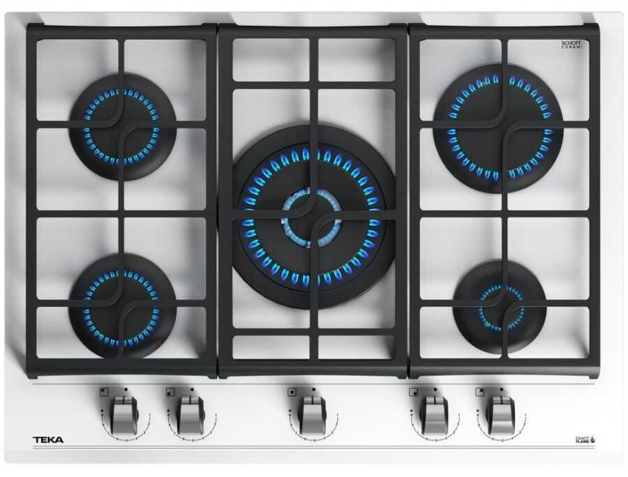 Designed for those who want to have a professional experience in the kitchen, Teka GZC 75330 XBC ExactFlame gas hob turns cooking into a pleasure with its stylish design and superior technology. With its 70 cm width, this hob offers a large cooking area and adds a modern touch to your kitchen with its white glass surface and cast iron grills.