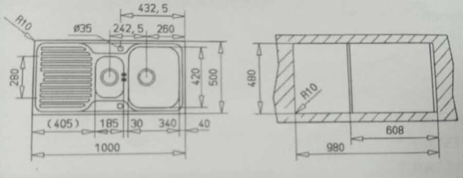 Hazne Derinliği: 150 mm (büyük hazne), 120 mm (küçük hazne)