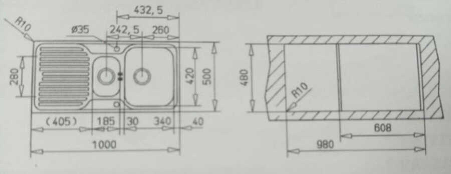 Hazne Derinliği: 150 mm (büyük hazne), 120 mm (küçük hazne)