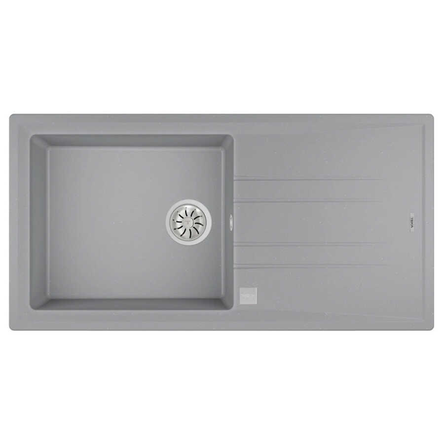 Product Description The Teka Stone 60 L-TG sink is designed to add a stylish and durable touch to your kitchen. Made from granite (Tegranit) composite material, this model complements modern kitchens with its metallic gray color. It offers ergonomic use with its large main basin and adjacent drip tray, providing high resistance to heat, impact, and stains.