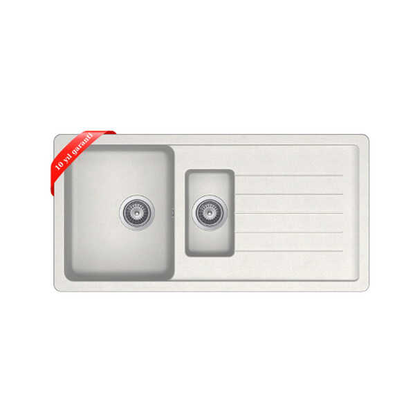 Ukinox Valente D 150L 1.5 Bowl White Granite Kitchen Sink (G235) is a design marvel that brings elegance and functionality together. It adds sparkle to your kitchen with its elegant white granite appearance and modern lines, while its durable structure and large internal volume make your daily work easier.
